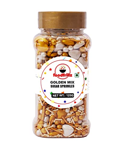 foodfrillz Golden Mix Sprinkles for Cake Decoration 125 g