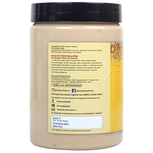 tahini paste 500g [100% pure + pate de ] tahini paste is one of our go to over topgs on various savoury dishes. o known as ardeh it is a condiment made from toasted ground hulled seeds. Tahini is served as a dip on its own or as a major component of hummus Baba ghanoush and halva. Stir well before use oil separation is natural serve this tahini paste with grilled meats or roasted vegetables or use it as a base for a silky avocado dip or an herby salad dressing. - simply good food How to use/ directions tahini sauce/ dip: take 1/2 a cup of tahini and little water [chilled water recommended] stir well until it becomes a homogeneous mixture [more water for less viscous tahini] lemon juice and salt to taste roasted and crushed cumin crushed garlic to the taste and stir it very well. Garnish it with fresh parsley or red chilli powder or sliced tomatoes and serve.