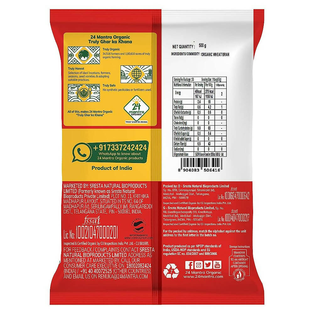 The outer layer of wheat is bran. The major constituent of 24 Mantra Organic Wheat Bran is dietary fiber. Bran fractions produced by milling also contain minerals vitamin pyridoxine thiamine folate and vitamin E and some phytochemicals in particular antioxidants such as phenolic compounds. Dietary fiber: Higher intakes of dietary fiber in wheat bran reduces the risk of developing several chronic diseases. These include cardiovascular disease type 2 diabetes and some cancers and has been associated with lower body weights. 24 Mantra Organic Wheat Bran contributes towards improving immune system and preventing constipation.