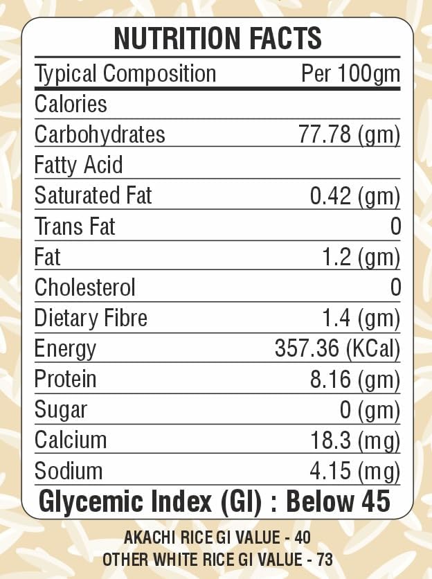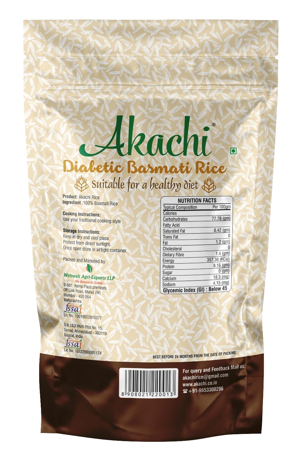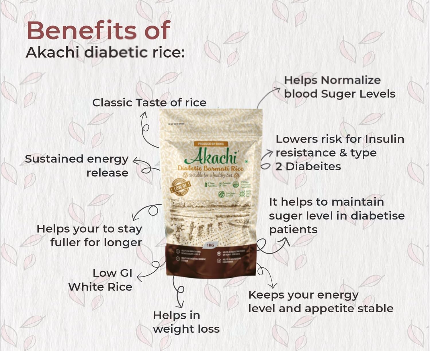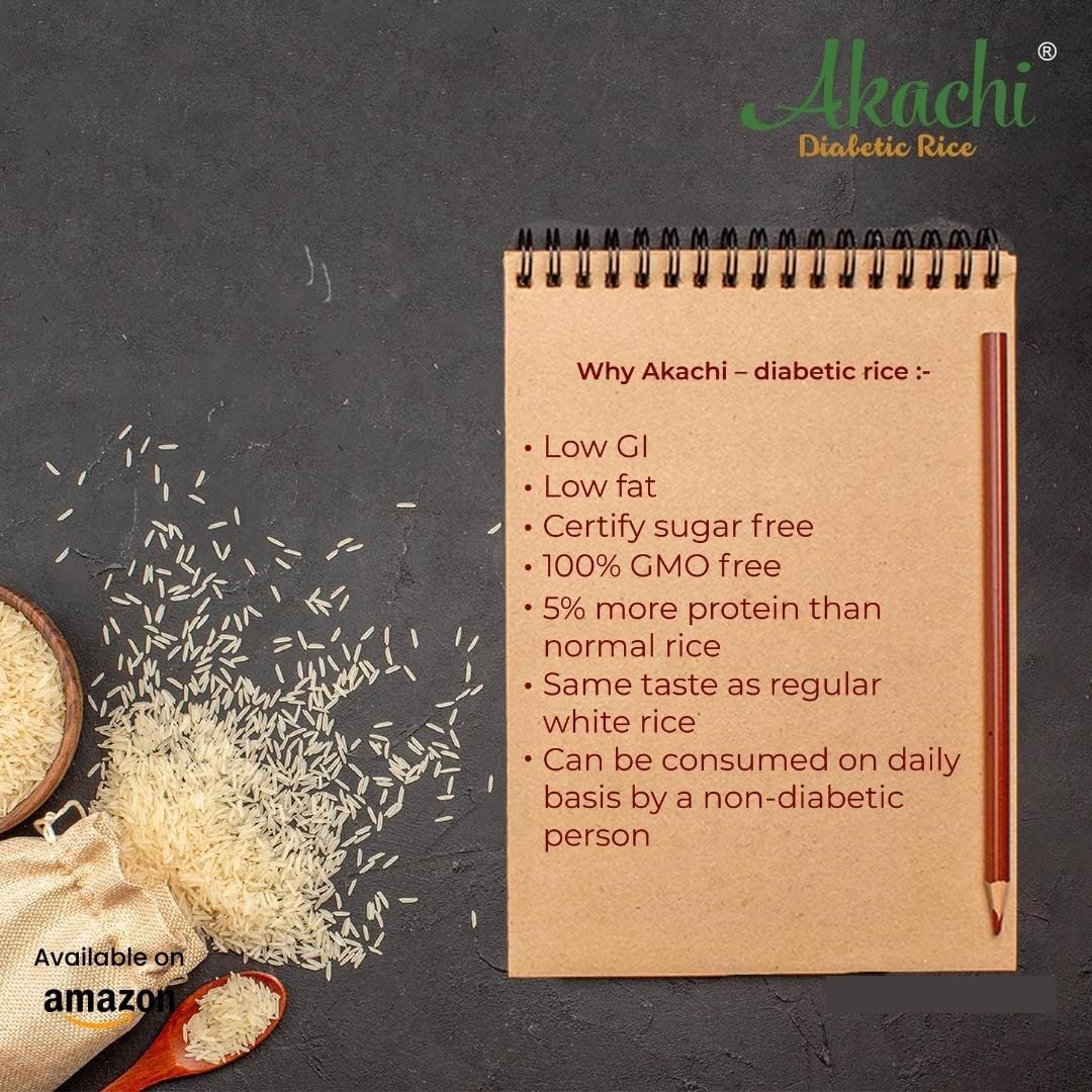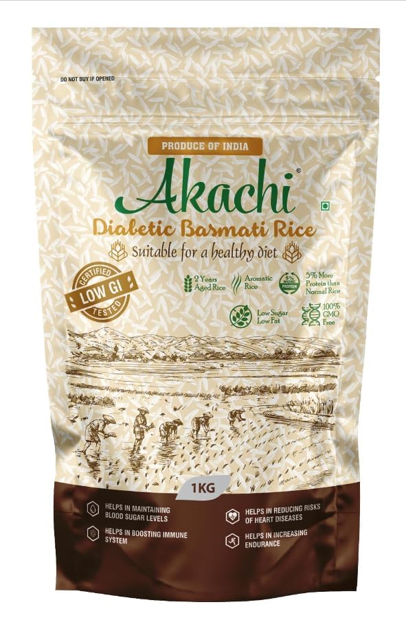 AKACHI Diet and Diabetic Rice is the best choice for those looking to make healthier food choices without compromising on taste or quality AKACHI Diet and Diabetic Rice a specially curated rice variety designed to meet the dietary needs of individuals with diabetes or those following a weight loss regime. This low glycemic index (GI) rice is carefully processed to retain its natural nutrients and is free from chemicals ensuring a healthy alternative to regular rice. (1KG)