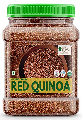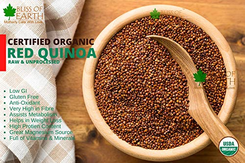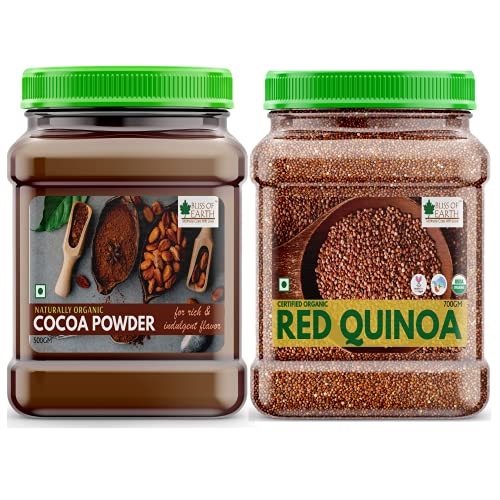 Bliss of Earth Naturally Organic Cocoa Powder is the perfect companion to any health concious kitchen. From holiday desserts and everyday baking to a steaming cup of cocoa on those chilli mornigs our cocoa powder offers a guil-free way to satisfy your sweet tooth without the high amount of sugar fat and preservatives which are commonly available in other mixes. In addition to its rich and indulgent flavor it is non-alkalinized and also has naturally occuring cocoa flavonols (polyphenols). Bliss of Earth Certified Organic Red Quinoa is one of the most popular healthfood. Its high in protein fiber magnesium B vitamins iron potassium calcium phosphorus vitamin E and various beneficial antioxidants. Its also one of the few plant foods that contain sufficient amount of all nine essential amino acids.