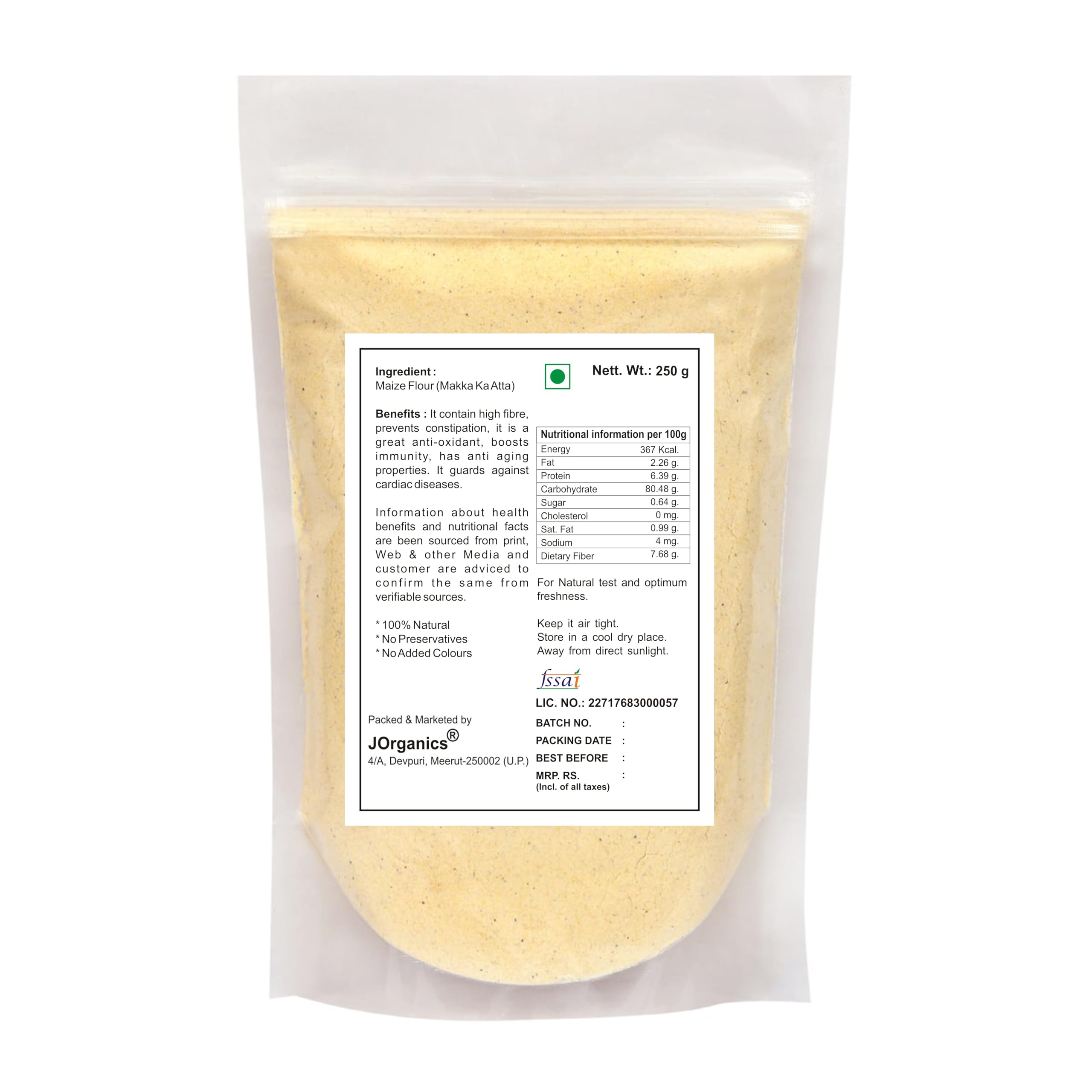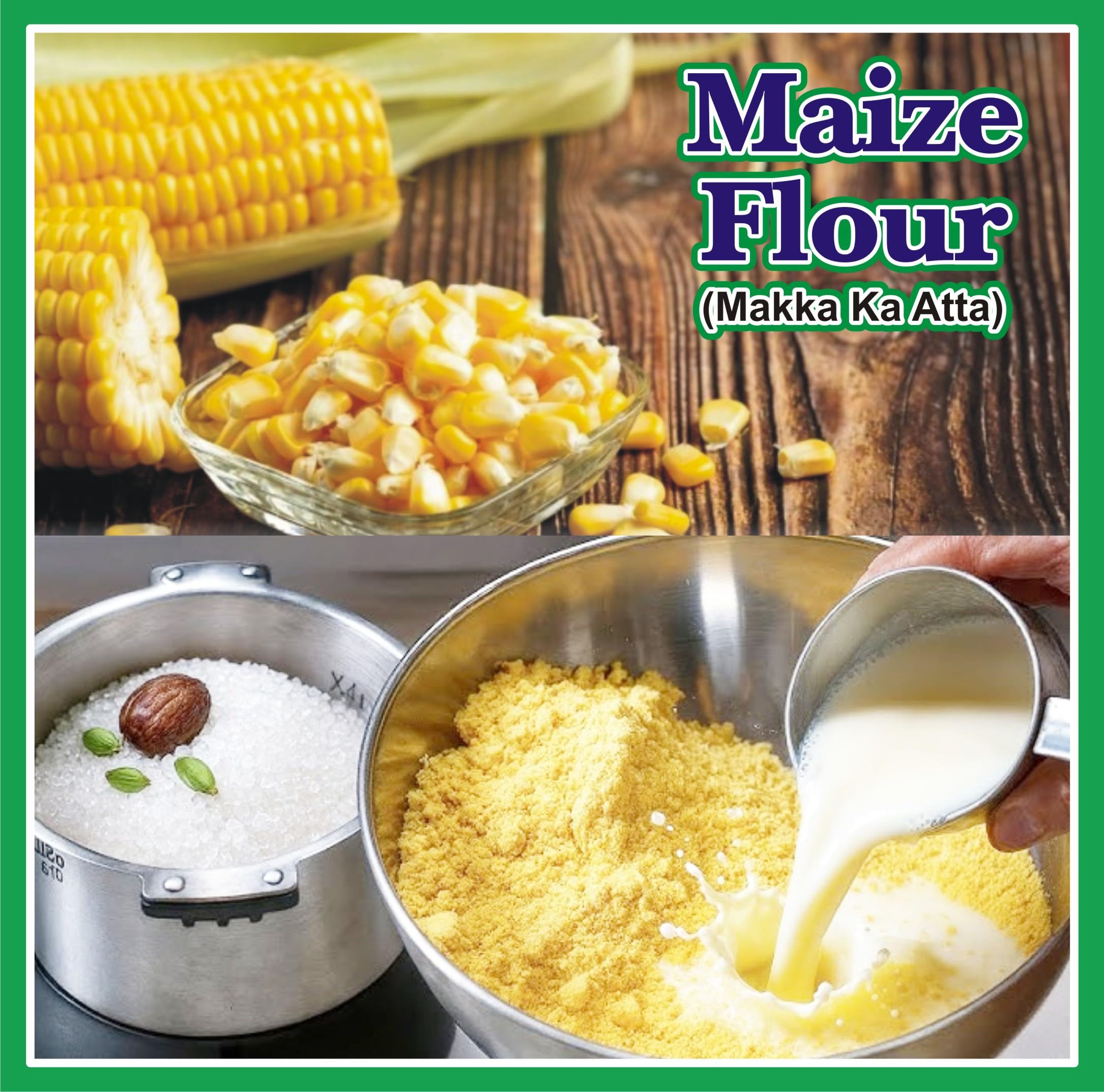 Maize flour is naturally rich in dietary fibre antioxidants and vegetable proteins. It is also rich in magnesium.It is used as a thickening agent in liquid-based foods.(E.G- soup sauces gravies custard)100 % Natural - Theses are juicy tender and sweet in taste.Usually by mixing it with a lower-temperature liquid to form a paste or slurry.Enjoy the goodness of farm fresh Maize flour with its absolute pureness and freshness.Maize / Corn Flour or Makki atta is Gluten free ; is a wholesum nutritious food with high protein fibre diet for people who want to stay fit.*24x7 service available