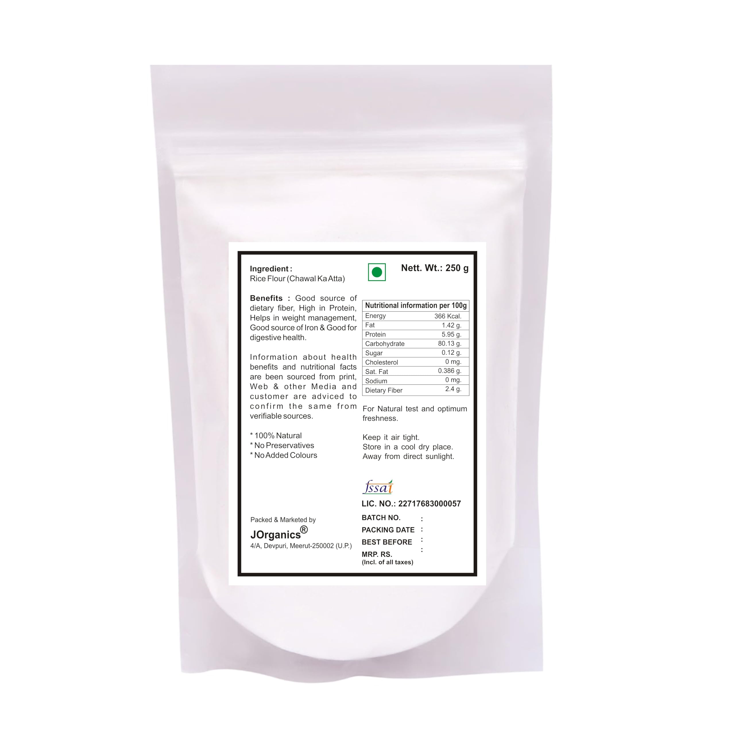 JOrganics Premium Rice Flour or Chawal ka Atta 250g Organic Rice Flour | 100% Natural Gluten Free Chawal ka Atta Vegan & Rich in Protein | Gluten Free & Chakki Ground