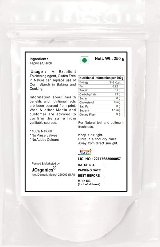 Tapioca flour also known as tapioca starch is a starchy white flour that has a slightly sweet flavor to it. Tapioca flour is an alternative to traditional wheat flour and has a variety of uses in baking. The flour is made from the starch extracted from the South Indian cassava plant. When the roots have fully developed they are harvested and processed to remove toxins. The starch is then extracted from the root by a repeated process of washing and pulping the mixture then separating the liquid. Tapioca flour helps bind gluten-free recipes and improves the texture of baked goods. Tapioca helps add crispness to crusts and chew to baked goods. Tapioca flour is an extremely smooth flour which makes for a great thickener in sauces pies and soups since it never discolors and contains no discernible taste or smell. It can also be used to replace corn starch (use 2 Tbsp tapioca flour for each 1 Tbsp corn starch).