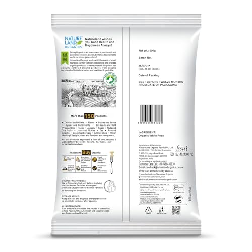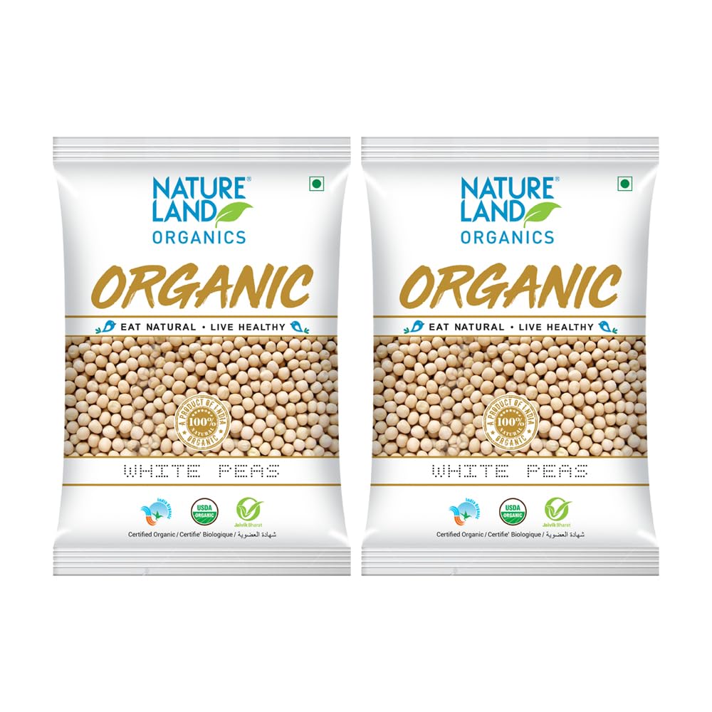 Natureland's white peas are also known as vatana in some parts of india mainly grown and harvested from noth india and some parts of west india. White peas are machine cleaned and handpicked before packing to ensure its purity and hygiene which is healthier tastier and cooks uniformly.
