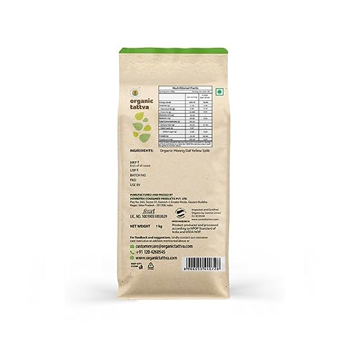 HomeGroceryCookingOrganic Flours, Rice & PulsesOrganic Tattva, Moong Dal Yellow Split, 1kg | Rich in Protein | Naturally Gluten Free | Unpolished Dal | Pesticide and Chemical Free | Pack of 1
