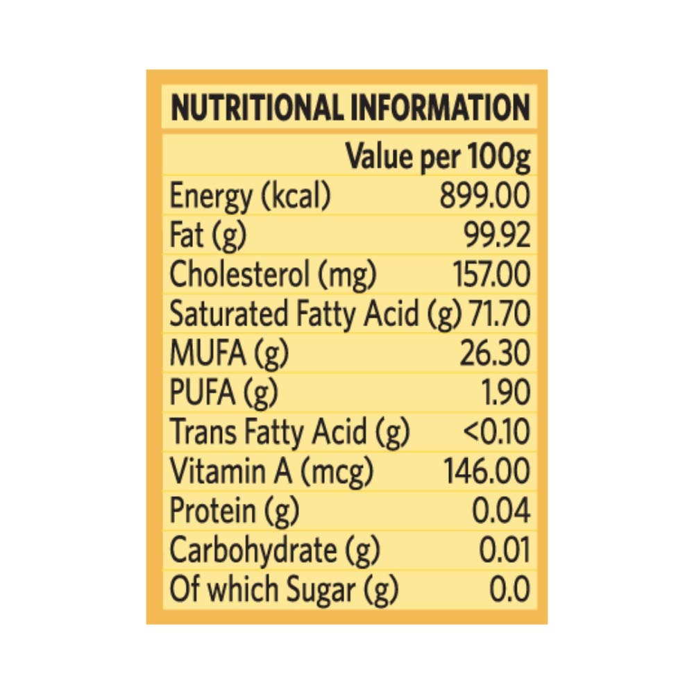 Organic India Organic Cow GheeOrganic India Organic Cow Ghee is prepared by simmering butter over low heat and gradually removing the milk solids as these are formed.Type: GheeSkin type: AllColor: GoldenForm: Semi-liquidTaste: Nutty and savoryGender: Both men and womenSuitable for: Both children and adultsPackage content: 500ml in an airtight bottleKitchen useThis delicious and creamy spread can be eaten with chapatis and parantha. It can be used to fry, sauté and bake. Ghee can be also used as a topping on bread and popcorns.Other usesIt can be used as a bath oil. Use it as a massage oil for skin care.IngredientsOrganic India Organic Cow Ghee is made with 100% pure butter.FeaturesIs 100% herbalComes with a rich aromaCan be used for 50 servingsIs luscious, silky and smooth in textureIs made from the milk of grass-fed cowsDoes not contain any added preservativesDoes not contain chemicals and pesticidesCan be used for both internal and external useComes with a long shelf life of 12 months from the date of manufactureTipsOrganic India Organic Cow Ghee stays fresh and useful for long if the below tips are followed.Keep in an airtight bottleStore at a cool and dry placeDisclaimer: Product images are for illustrative purposes on