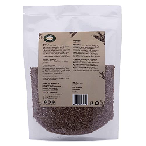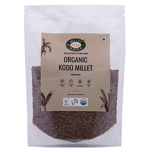 Millet Amma Unpolished CERTIFIED ORGANIC Kodo Millet Grains | 1 Kg Pack | (Arikelu | Hark | Varigu | Kodra | Varagu) | Rich in Fibre Than Rice and High Protein