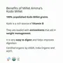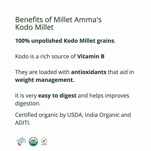 • Millet Amma's Organic Kodo Millets are a rich source of Vitamin B.
