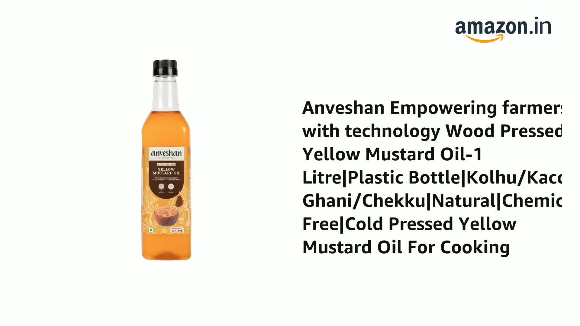 Anveshan Wood Pressed Yellow Mustard Oil-1 Litre | Plastic Bottle | Kolhu/Kacchi Ghani/Chekku | Natural | Chemical-Free | Cold Pressed Yellow Mustard Oil For Cooking