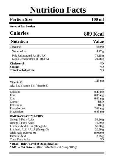 • Nutritional Benefits: Rich in omega - 3, 6 & 11