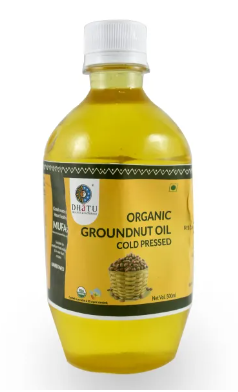 Dhatu Groundnut oil is cold pressed, raw and is not refined. In cold pressed method, peanuts are crushed to force the oil out and does not involve high heat application. This results in the retainment of natural flavour and nutrition of peanuts in the oil. The smoke point of raw groundnut oil is around 160 C, and makes it an ideal choice for medium heat or raw cooking. A tablespoon of groundnut oil contains about 11% RDI of Vitamin E. It is also rich in heart healthy monounsaturated fatty acids (MUFAs) and polyunsatured fatty acids (PUFAs).