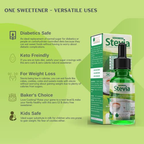 Bliss of Earth 6X30ml Original 99.8% REB-A Stevia Liquid Drops Glycerine Free Keto Sugarfree Sweetener in Glass Bottle