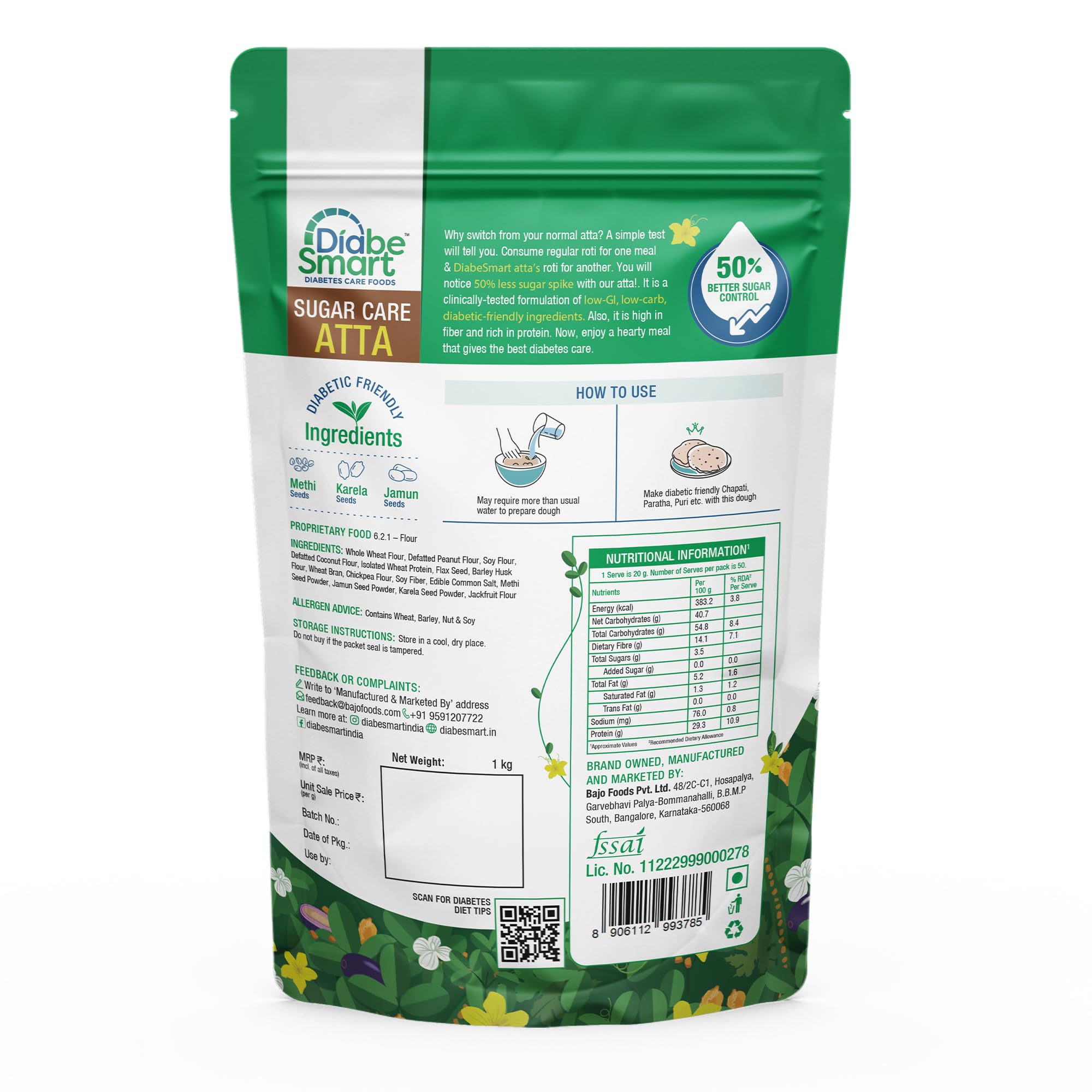 HomeGroceryCookingNatural SugarDiabeSmart Sugar Care Atta 1 Kg | 50% Better Sugar Control | Low GI Multigrain Atta for Sugar Release Control | Tested on Diabetics | Diabetic Atta For Diabetic Care | High Fiber Flour