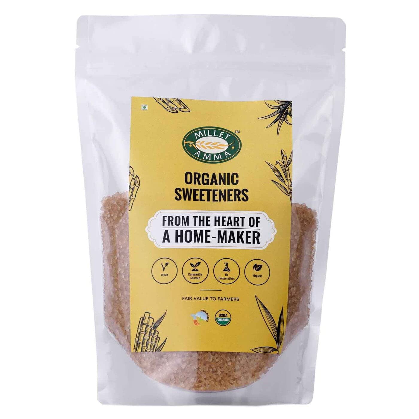 Milletamma's brown sugar is the natural brown sugar and contains minerlike potassium and calcium. It to and energy level. It treats urinary infection and improves . It helps to removes dead skin cell from body. Storage: Store your favourite Milletamma's brown sugar at cool and dry place for 3 months.
