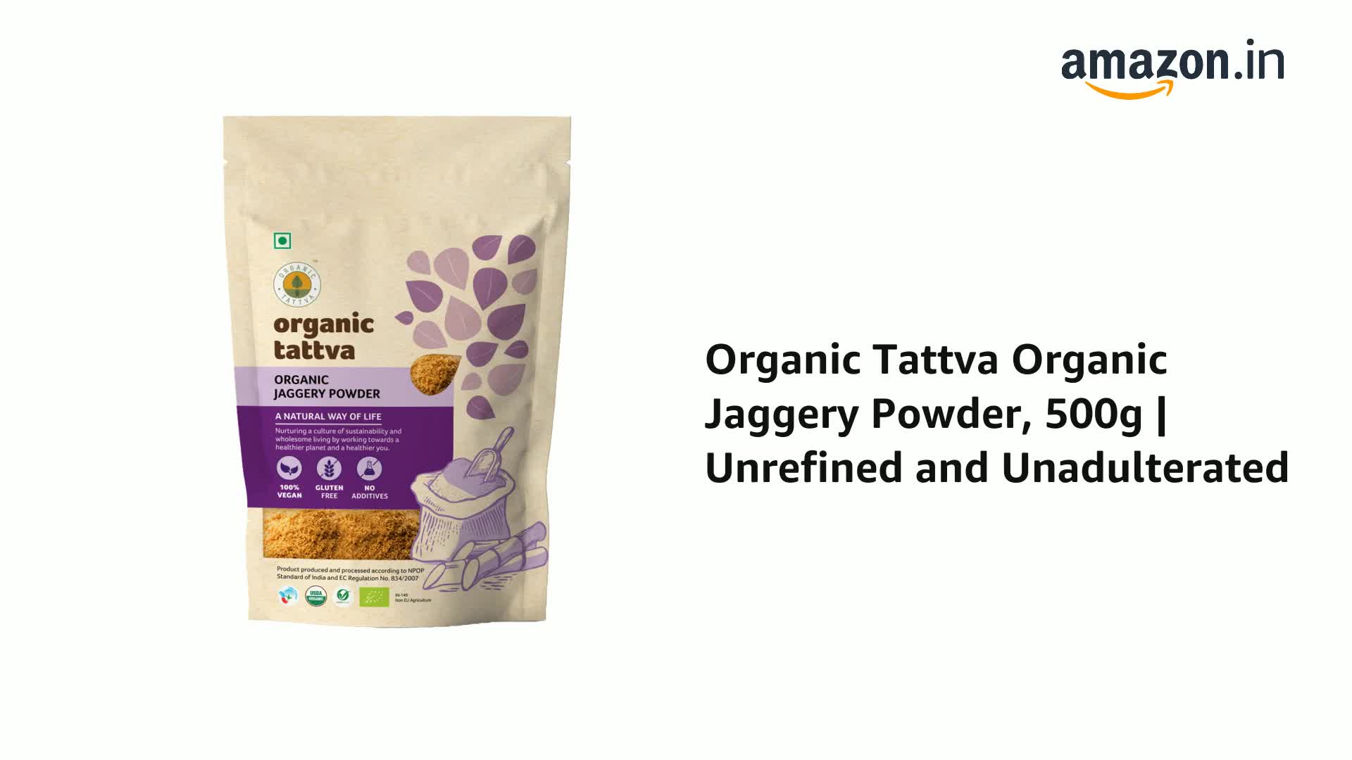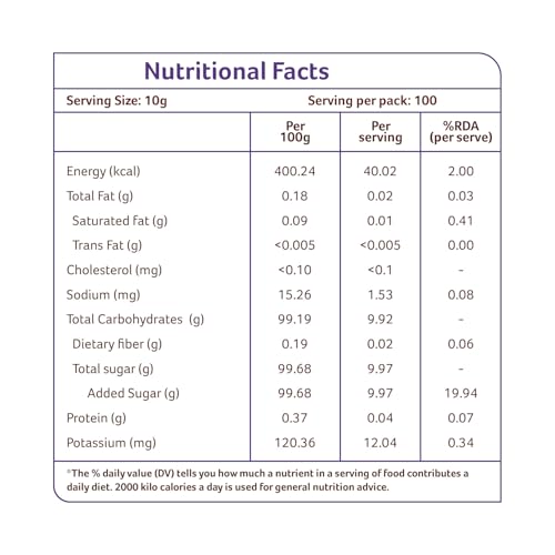 Jaggery holds a very important place in the medicinal and culinary industry. The jaggery offered to you is nutritious and chemical-free. Organic jaggery powder is extracted from the most nutritious sugar canes to ensure that it is free from any chemicals. A 100g serving of Organic Tattvas Organic Jaggery Powder contains 0g trans fat and 0mg cholesterol. The calorie count per serving of Organic Jaggery Powder is 383. For a healthy lifestyle switch to Organic Jaggery Powder by Organic Tattva today.