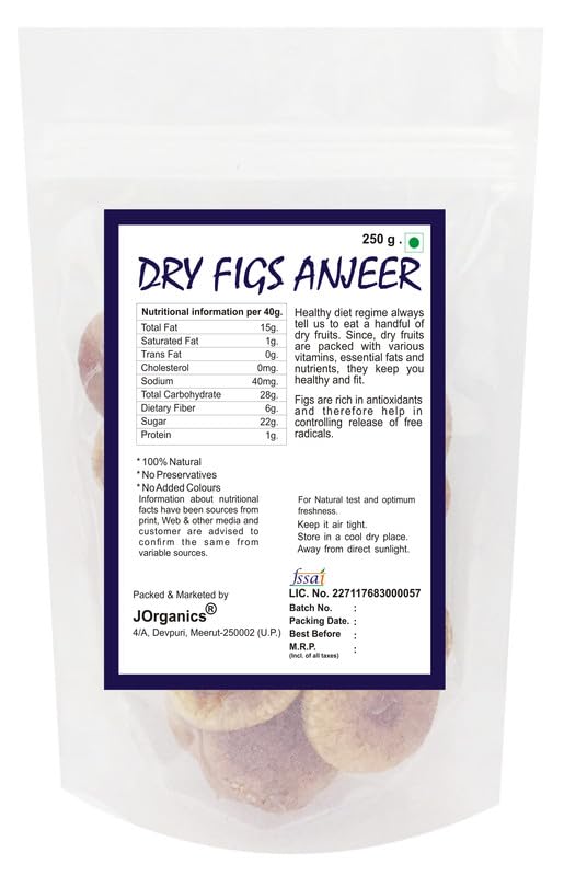 JOrganics Anjeer 250gm Dry Fruits Nuts & Seeds | Healthy Natural Snack | Rich in Protein Fiber & Antioxidants | Boost Energy & Immunity | 100% Pure & Fresh