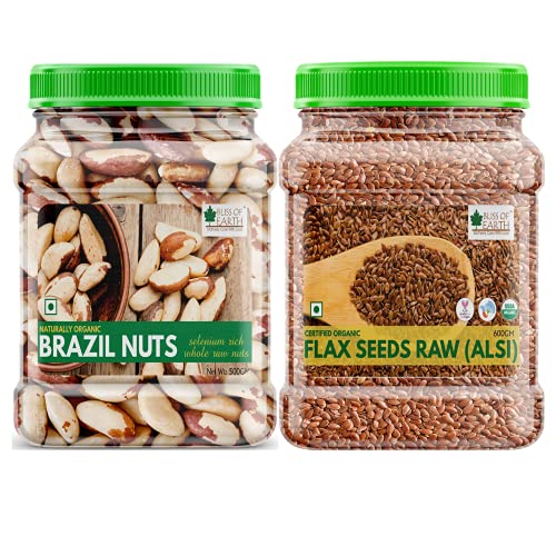 Bliss of Earth Brazil Nuts are nutritional powerhouse providing healthy fats vitamins and minerals. They are particularly high in selenium a mineral with potent antioxidant properties. Hazelnuts can be consumed as a raw snack roasted or added to baked dishes such as cake chocolates & shakes. All in all brazil nuts are an excellent and delicious source of nutrients for a healthy diet. Direction for use: Consume raw roasted or salted. Add to your cake chocolates or shakes. Bliss of Earth Certified Organic Flax Seeds popularly known as Alsi is one of the popular health food due to its high content of hearth healthy OMEGA-3 fats fiber and other plant compounds. It offers many health benefits such as improved digestion and reduced risk of heart disease.