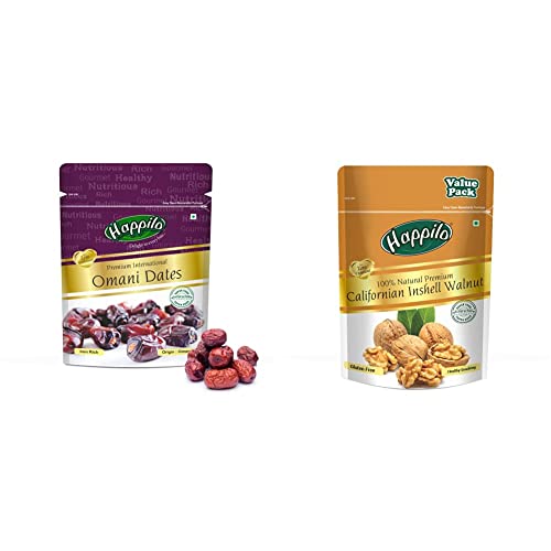 Happilo Premium International Omani Dates 250gHappily has travelled the world to get the finest gourmet dry fruits dried fruits nuts berries and dates 100 percent natural and authentic. Indulge into the gourmet and grocery world of Happily with awesome natural nuts and dry fruits along with the unique dry fruit mixes fusions and flavoured dry fruits healthy seeds and dried berries specially crafted for your taste and health. Happily dry fruit gift boxes and festive dry fruits and nuts gift pack brings health happiness and love to gift to your colleagues friends and family. We bring you the taste and health together in single pack in the finest of packing packed in an art of the state facility certified by all majors like fssai iso. Every Happily pack is a perfect dry fruits gift for every festive occasion.Happilo Premium 100% Natural Californian Inshell Walnut Kernels Value Pack Pouch 500 gWalnuts are deliciously healthy and great for snacking baking or cooking. These in shell raw walnut halves are mainly grown in California and northern India. Eating raw walnuts is one of the easiest things to do to improve your health.Happily has travelled the world to get the finest gourmet dry fruits dried fruits nuts berries and dates. Indulge into the gourmet and grocery world of Happily with awesome nuts and dry fruits along with the unique dry fruit mixes fusions and flavoured dry fruits healthy seeds and dried berries specially crafted for your taste and health. Happilo dry fruit gift boxes and festive dry fruits and nuts gift pack brings health happiness and love to gift to your colleagues friends and family. We bring you the taste and health together in single pack in the finest of packing packed in an art of the state facility certified by all majors like fssai iso. Every Happily pack is a perfect dry fruits gift for every festive occasion.