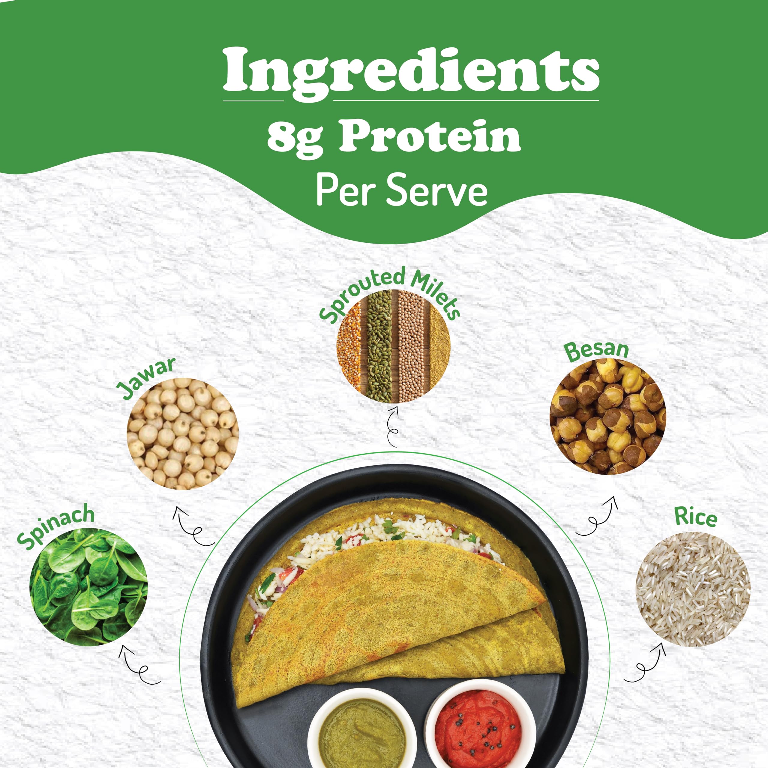 Gladful Sprouted Protein Spinach Instant Chilla Mix - No Maida No Palm Oil Gluten Free High Protein & Fiber-Rich Food 200 g (Pack of 1)