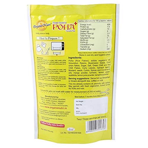 Poha (Rice flakes) Edible vegetable oil Groundnut Onion flakes salt sugar mustard seeds Green Chilli curry leaves lemon juice powder cumin amchoor powder asafoetida powder turmeric ginger powder Fennel powder citric acid.