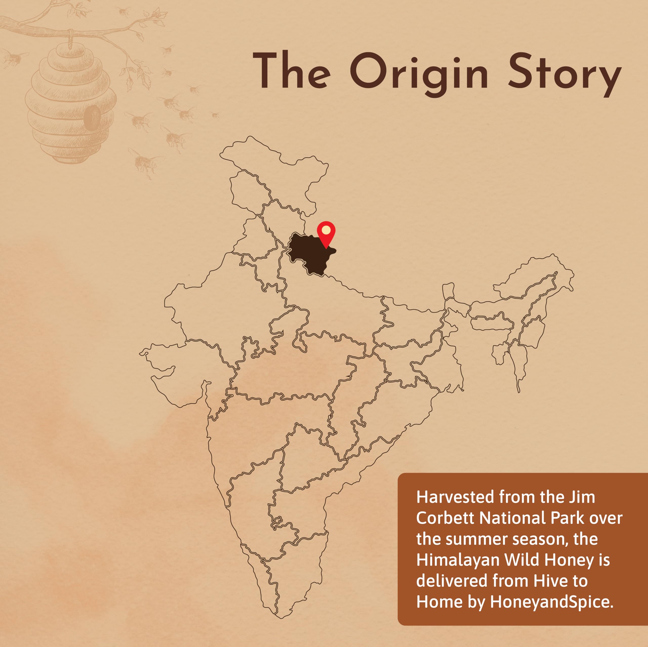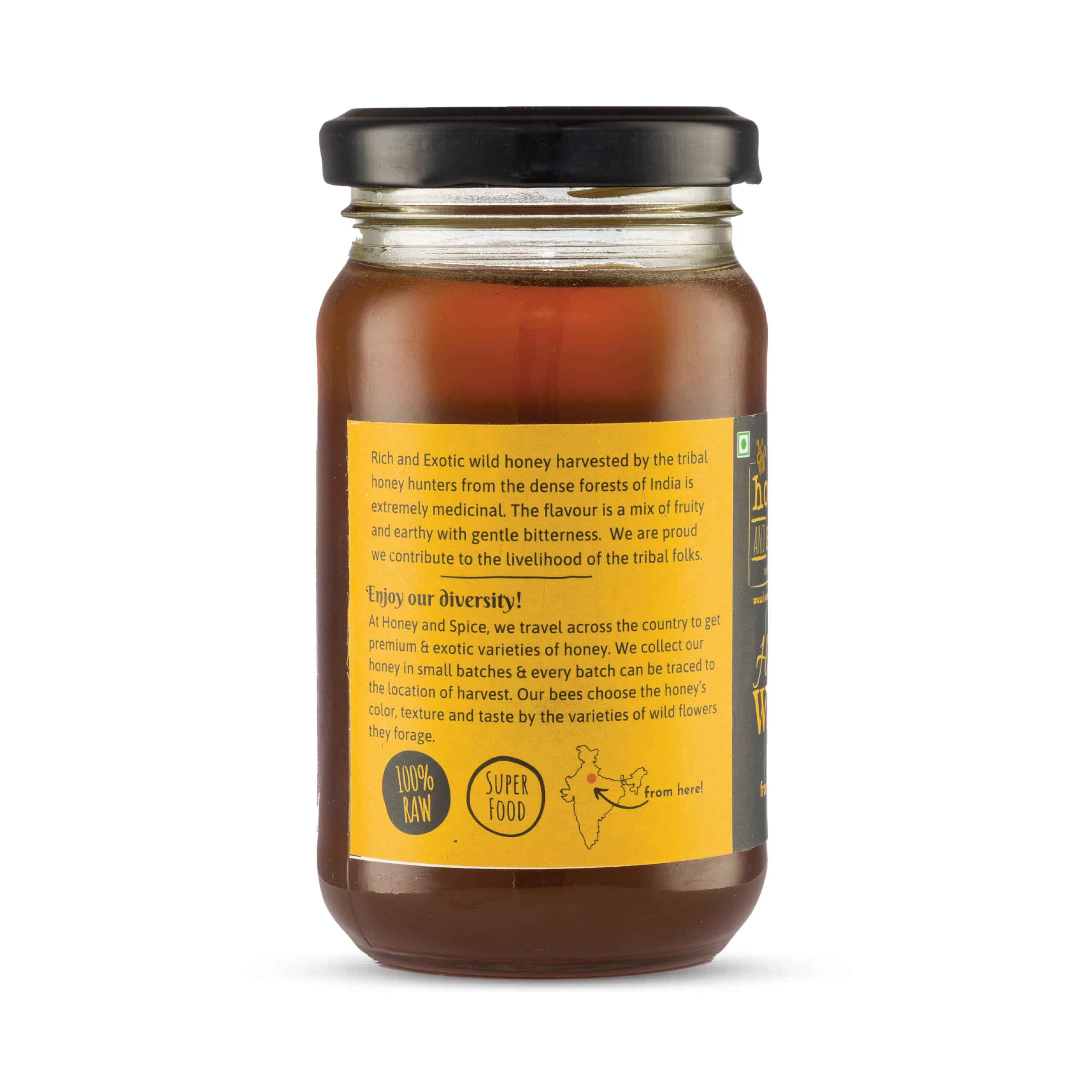 Honey and Spice Pure Raw Wild Honey (500g) | Single Origin Himalayan honey From the forests of Jim Corbett National Park With No Added Preservatives | 100% Raw and Pure | Unblended and Unpasteurized | Natural and Original | Unprocessed | No Added Sugar | FDA certified