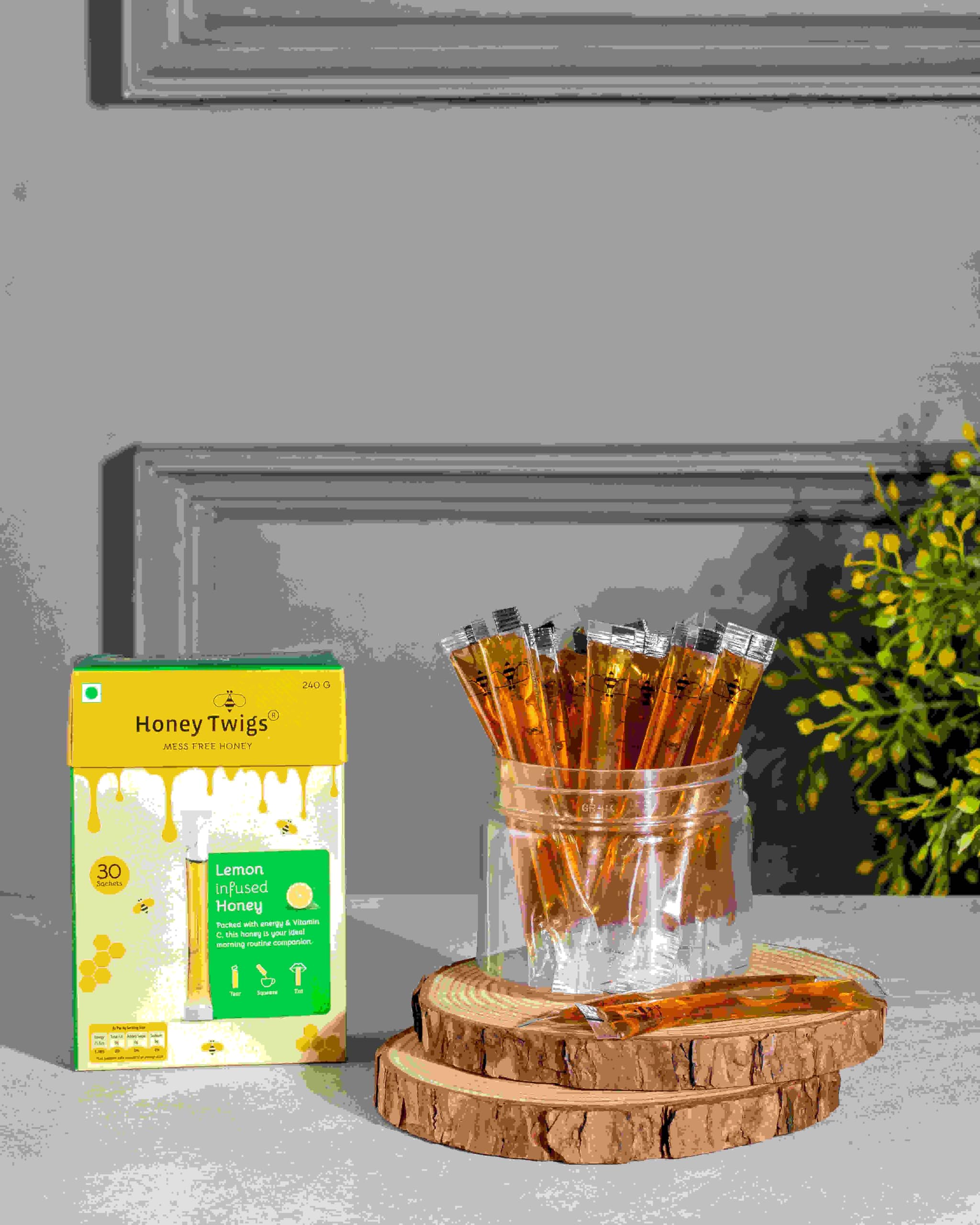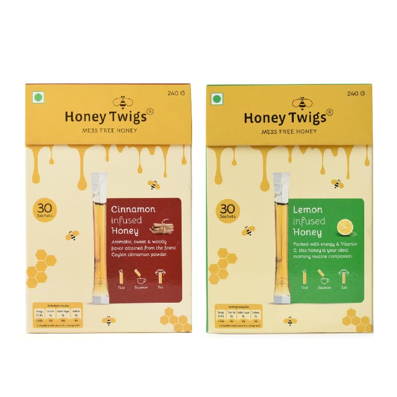 Honey Twigs Natural Honey | Lemon Honey and Cinnamon Honey 480g(240g + 240g - 60 Twigs) | Infused with Natural Ingredients | Pure Honey | No Added Color | No Preservatives
