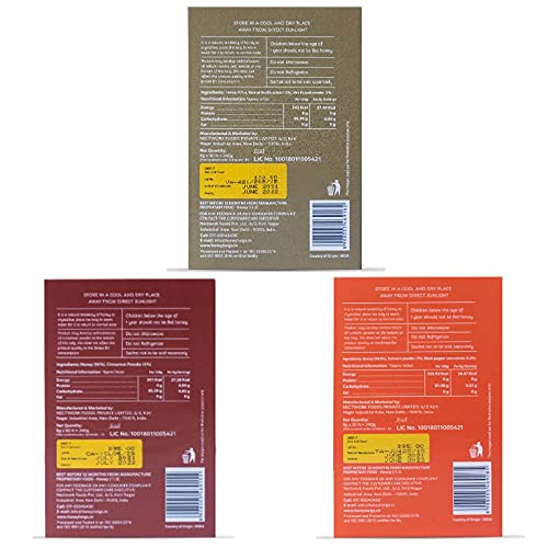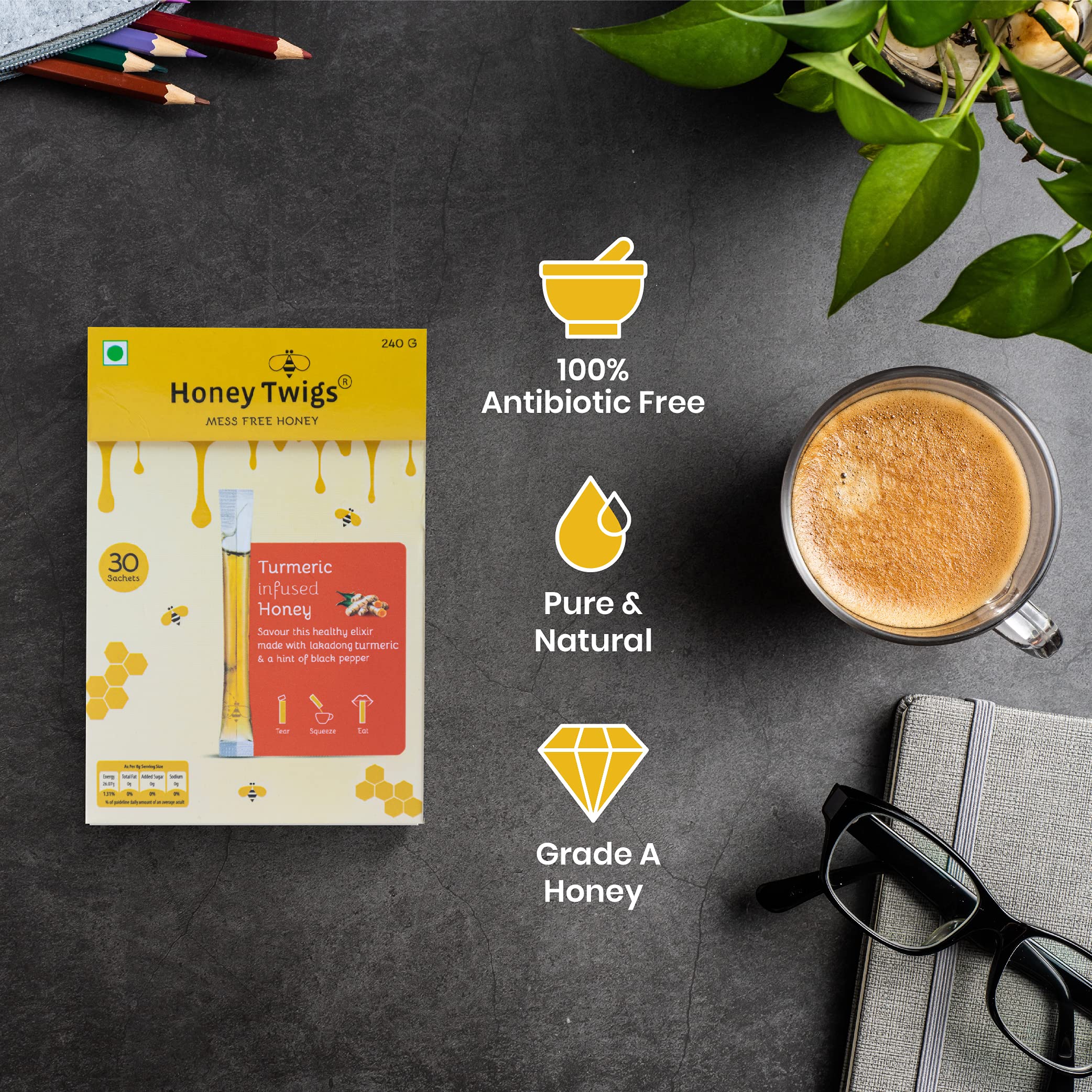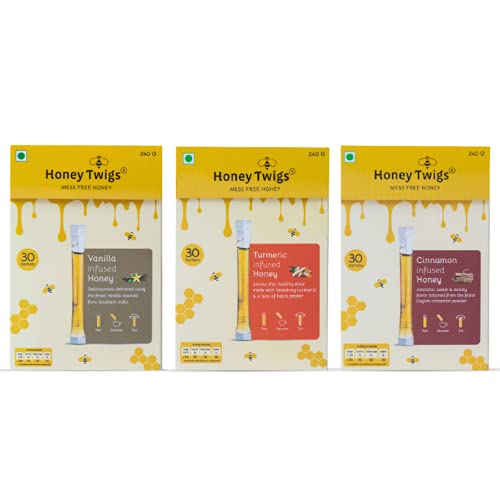Honey Twigs Natural Honey | Pure Vanilla Honey Turmeric Honey Cinnamon Honey 720gms (90 Sachets - 240g x 3 Packs) | Healthy & Spice Infused Honey - Immunity Boosting | 100% Natural & Pure | Traceable Source | Zero Additives | Zero Added Sugar