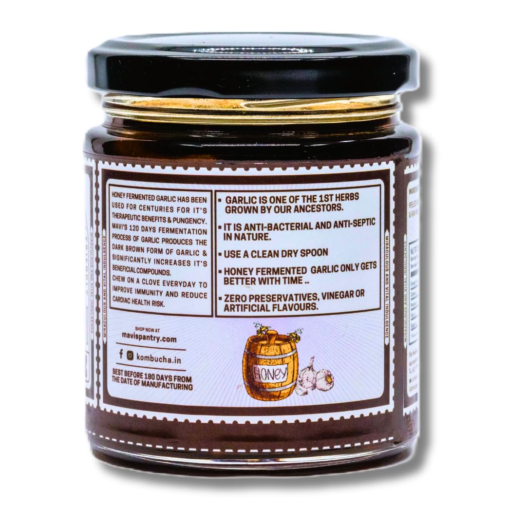 Honey Fermented Garlic is a delectable blend of two superfoods â garlic and honey. This unique product combines the potent flavour of garlic with the sweetness of honey through a natural fermentation process. The fermentation not only enhances the taste but also amplifies the health benefits of both ingredients. Garlic is renowned for its immune-boosting properties while honey offers antioxidants and has antimicrobial qualities. This versatile condiment can be used as a spread on bread or crackers a marinade for meats or a flavourful addition to dressings and sauces. With its distinct taste and nutritional value Honey Fermented Garlic is a must-have in every kitchen. Enjoy the tantalizing flavour and reap the benefits of this age-old culinary delight. Suitable for vegetarians and vegans alike.