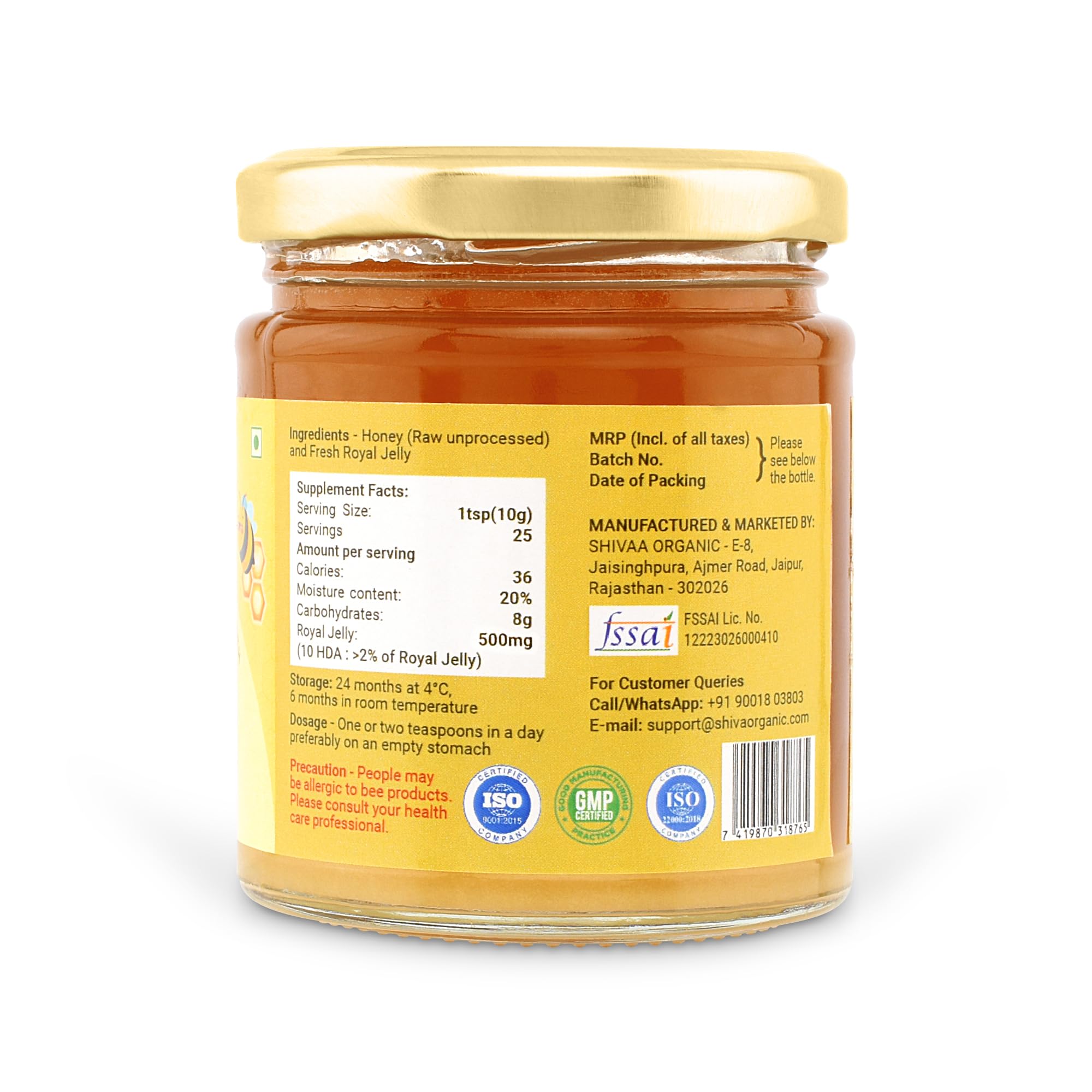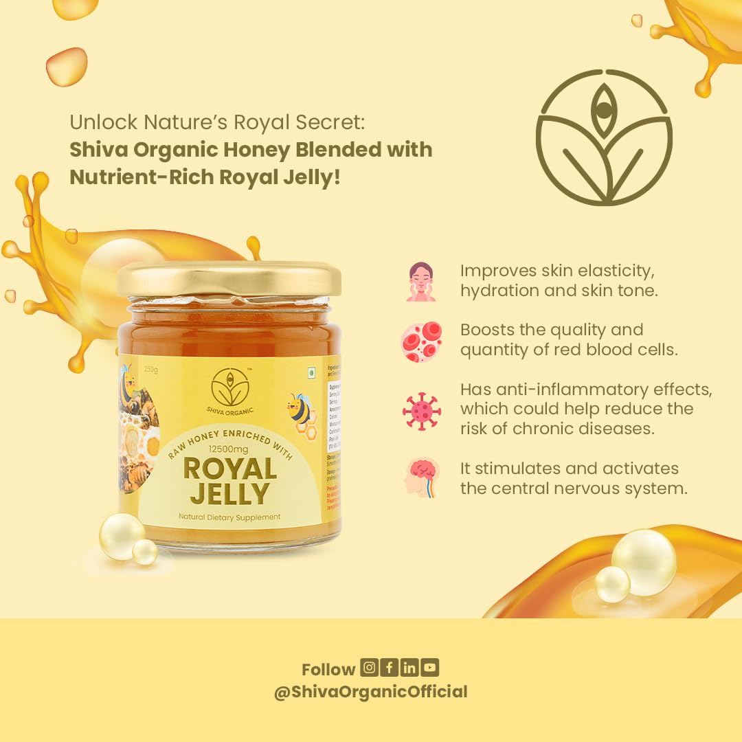 Shiva Organic Raw Honey Enriched with 5% Royal Jelly: A Natural Blend of Purity and Royalty (250g Enriched 5%)