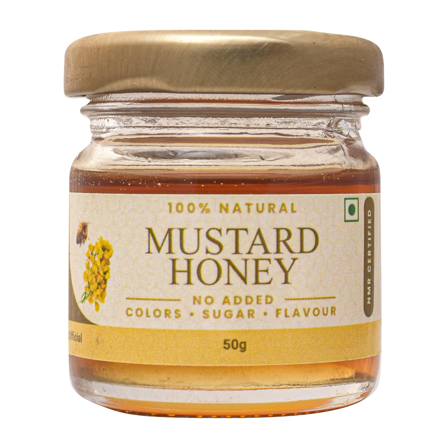 Shiva Organic Mustard Honey is collected directly from the best mustard flower region in India in their peak flowering season which makes it pure and natural.It attracts a lot of attention because of its natural sweetening and medicinal benefits.Our honey is not infused rather the bees collect the nectar from Mustard flower which makes it natural and nutrient-rich.Nectar Source: Mustard flowerColour: Creamy whiteTaste: PungentBenefits of Mustard Honey: Speeds metabolism Helps in releiving stress and insomnia Rich in protein supports bone health Helps in lowering blood pressureNMR certifies that this honey has no adulteration and origin authenticity.