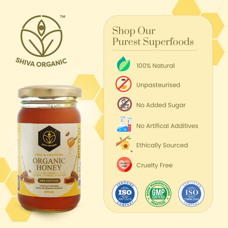 Shiva Organic Raw Organic Certified Honey 250g | 100% Pure NMR Tested | Raw and Unprocessed