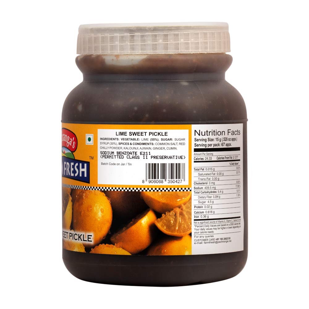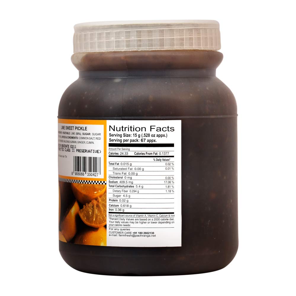 The Finest Flavour of Indian Tradition Since 1925. Original North Indian taste Lime Sweet pickle in edible oil. Real pieces of Lime. Excellent partner to Paranthas Roti Dal Chawal and so on! World famous Pachranga brand from Panipat.