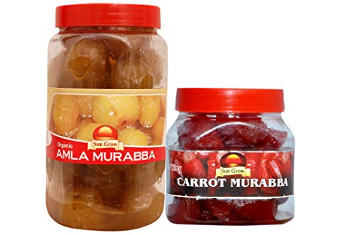 Sun Grow (Combo- Pack Of 2) Sun Grow Homemade Organic Amla Murabba (Immunity Booster Pack) Ingredient:, Fenugreek, Clove, Elam, Crystals, Cardamom (Elichie), Palm -1 Kg-&- Sun Grow Food Home Made ,Hand Made & Mother Made Herbal Organic Carrot Murabba 500g