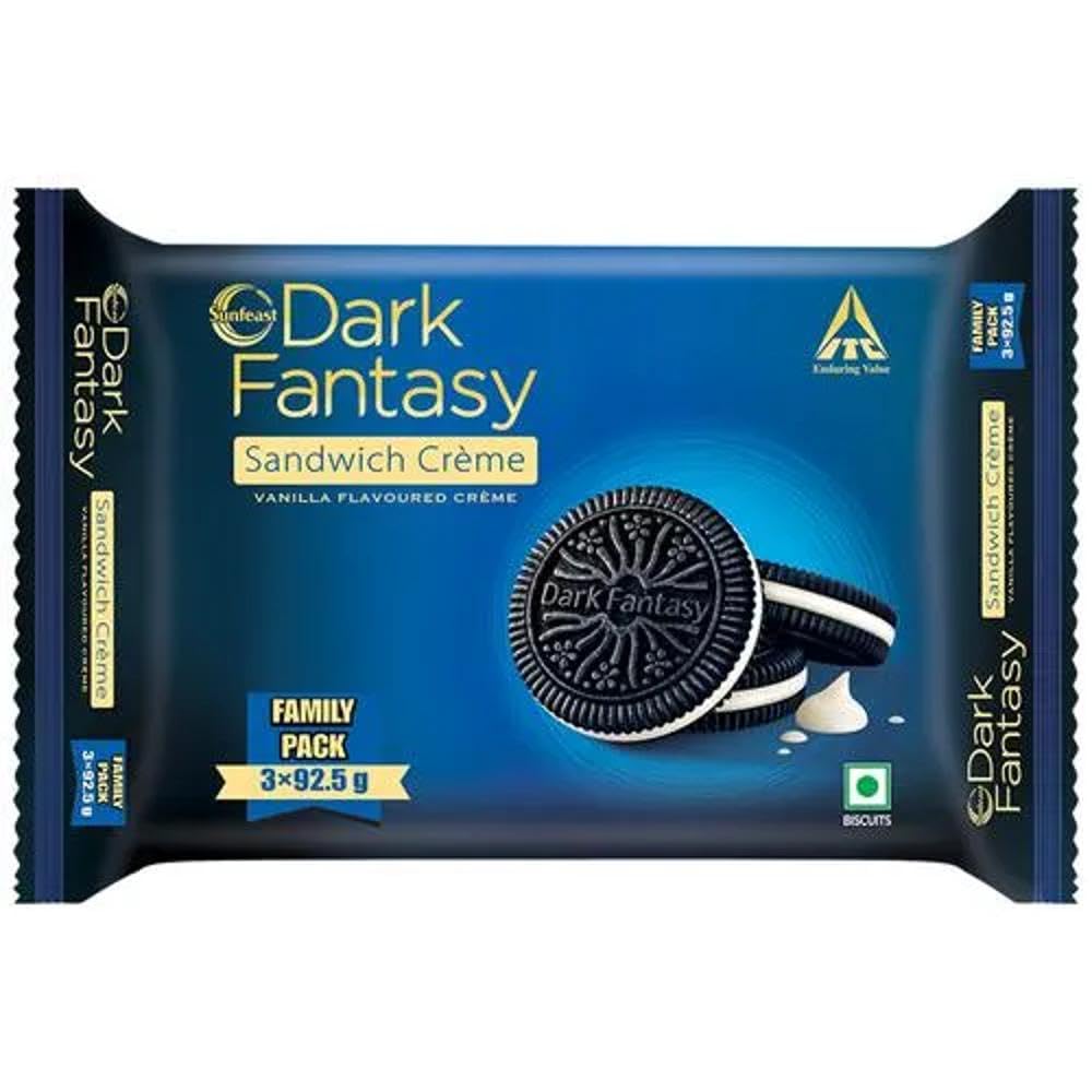 A cookie for the purely indulgent Sunfeast Dark Fantasy Vanilla Creme is a combination of rich dark biscuit with a delicious cream sandwiched between them. Discover bliss in every bite as the delightful combination of crunchy biscuit and aromatic vanilla come together to form a luxurious treat. Experience the perfect symphony of the finest vanilla balanced with rich aromatic cocoa. With each bite experience the rich smooth taste of vanilla cream between the intricately carved chocolate biscuits