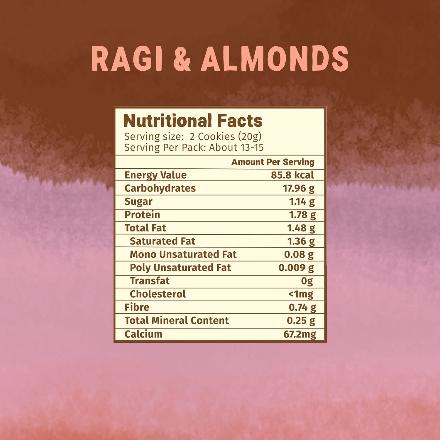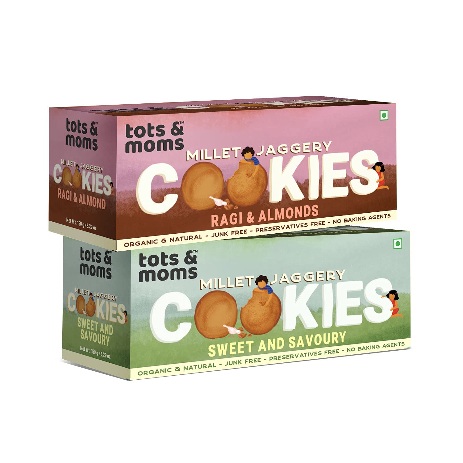 HomeGrocerySnacksCookiesTots & Moms NO Maida NO Sugar - Ragi & Almond Cookies |Sweet & Savory Cookies | Millet & Jaggery Biscuits | Pack of 2-150g Each