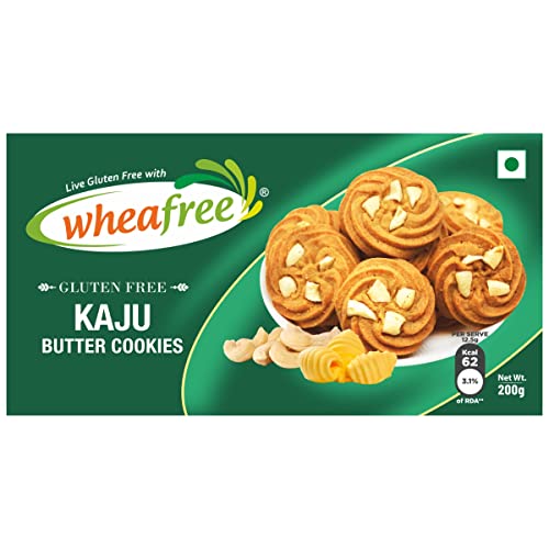 Wheafree Gluten Free Kaju Butter Cookies (Pack of 2 - 200g each)These cookies have now become an ideal companion for tea time. It can be consumed as snacks with morning or evening Tea/Coffee or can be combined with other recipes. We cater to a wide range of gluten-free products made in a contamination-free environment. Wheafree cookies and biscuits are manufactured to provide safe and healthy food options to people suffering from intolerance towards Gluten. Wheafree cookies and biscuits are free from grains like Wheat Barley Oats Rye and are made in 100% Gluten-free environment. We have made these multi-seed cookies and biscuits not only to take care of your nutritional needs but also to satisfy your craving for tasty and delicious snacks requirement.