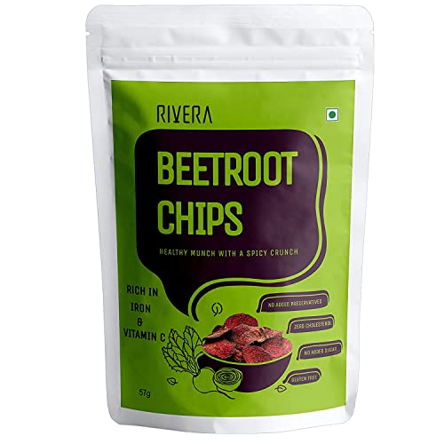 Rivera Crispy Beetroot Chips Rich In Iron Gluten Free Vegan 57G Each (Pack of 2)