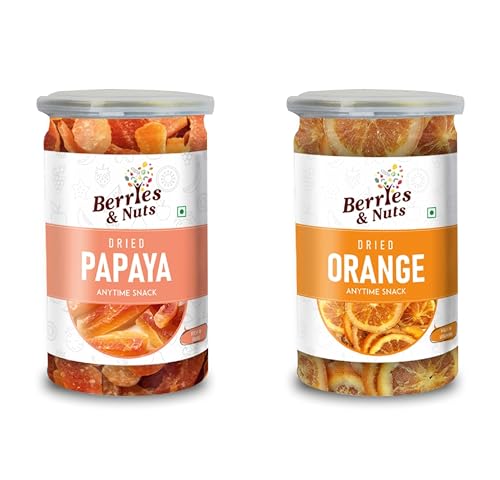 Berries And Nuts Premium Dried Papaya & Dried Orange Slice Combo | Papaya 200 Grams and Orange Slice 200 Grams | 400 Grams