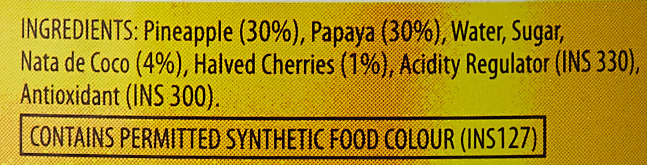As pioneers in packaged fruits with a heritage that goes back more than a century Del Monte believes in sourcing the tastiest and best quality fruits from around the world for our consumers in India. It is this philosophy that drives us to source the juiciest Pineapple Slices and Tidbits from Philippines; the most succulent Peach Halves imaginable from South Africa and exquisite Prunes and Cranberries from North and South America. Del Monte Fruit Cocktail is a cocktail of premium fruits like Pineapple Papaya Nata De Coco & Halved Cherries.