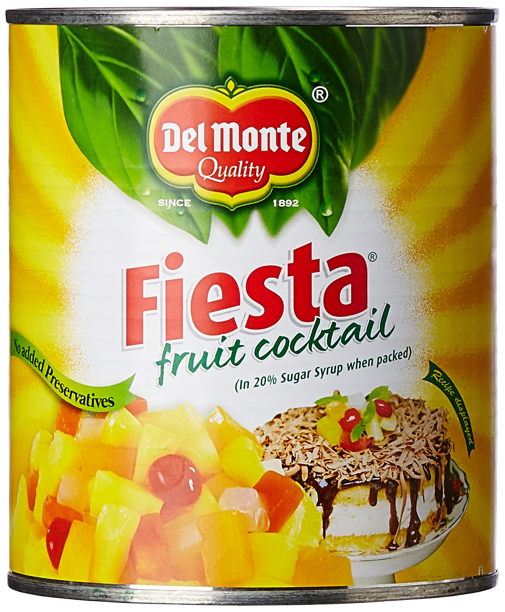 A Del Monte fruit cocktail contains perfectly ripe peaches pears grapes pineapples and cherries all sliced diced and mixed in a light syrup. With no preservatives artificial flavours or sweeteners a Del Monte fruit cocktail is a fat-free snack for you and the whole family. You can rely on Del Monte peaches pears and other fruits to be selected from nature's highest-quality fruits.