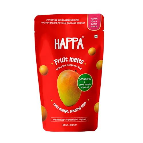 Happa Fruit Melts : 100% only fruit no other additive Happa Yogos: Tiny bursts of goodness! Crafted from wholesome yogurt and fruit Happa Yogos are specially designed yogurt drops that effortlessly melt in your mouth. These delightful treats offer babies and toddlers a delicious and wholesome snack that you can truly feel good about.