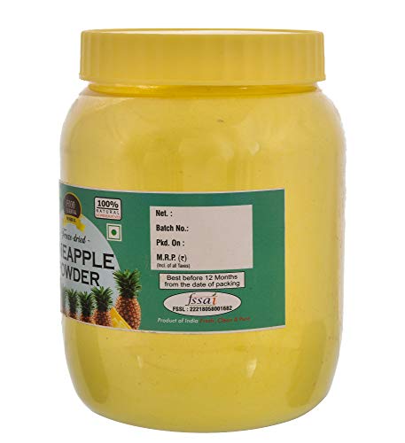 100% Pure & Natural Premium Quality It is rich in Vitamin C and is known to help in reducing illnesses and boosting the immune system Use pineapple powder in baking cakes Use in ice creams jelly thick shake shrikhand yogurt flavouring milk shake and used for flavouring and pastry flavoring. waffle flavoring. It can also be added to desserts such as puddings and parfaits or mixed into cake and muffin batters for a charming pineapple treat.