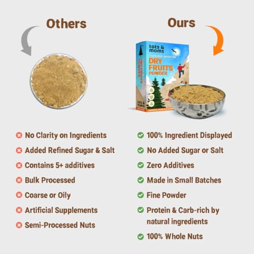 Unlock a world of wholesome nutrition for your kids with Dry Fruits Powder! This power-packed blend of essential dry fruits and spices – almonds cashews pistachios Nutmeg Saffron and turmeric – offers a delicious and convenient way to boost their growth and development with every spoonful.