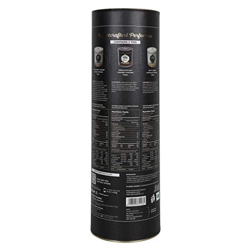 Sour Cream and Wasabi Cheese popcorn : A perfect mix of cheddar sour cream and Japanese wasabi (50g tin) Himalayan Salt Caramel popcorn : Heavenly caramel popcorn balanced to perfection with Himalayan salt (110g tin) Nutty Tuxedo Chocolate popcorn : A per