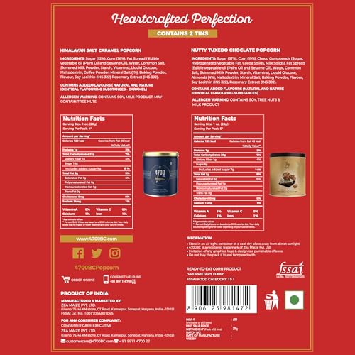 4700BC Pataka Popcorn 275g (2Tins: Nutty Tuxedo Chocolate and Himalayan Salt Caramel)
