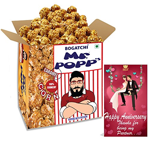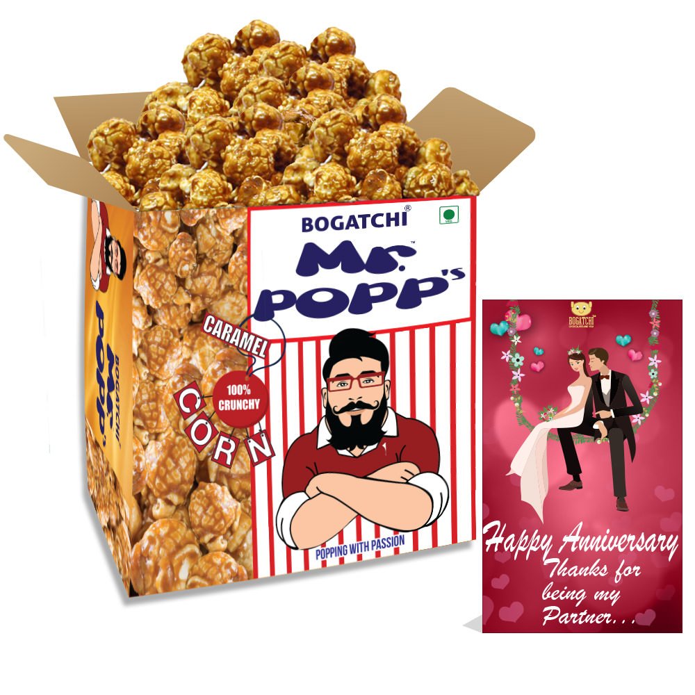 BOGATCHI Mr.POPP's Caramel Popcorn 100% Crunchy Handcrafted Gourmet Popcorn Best Anniversary Gift for Husband 375g + Free Happy Anniversary Greeting Card
