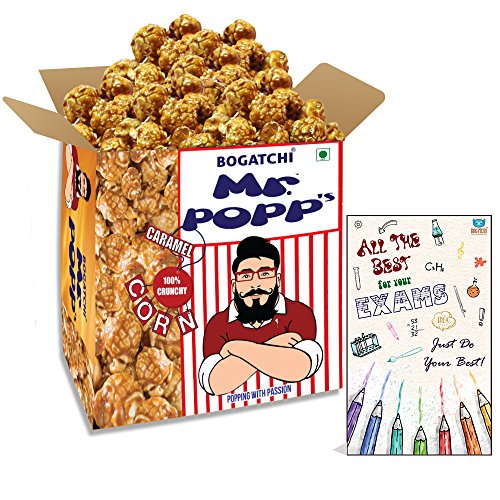 Bogatchi mr. Popp corn are handcrafted in old-fashioned copper kettles one batch at a time this popcorn is a crunchy and buttery caramel delight. Crafted in the India from quality ingredients. This caramelized popcorn is gluten-free cholesterol free and features non-gmo popcorn. It is high in dietary fiber and calcium. This caramel popcorn makes a great snack on the go for school work and home. Perfect snacks for movie time binge watching tv series marathon exam time snacking or just to make your self feel good. Bogatchi mr.Popp corn makes the best gift for celebration occasions like rakhi diwali anniversary birthday x-mas with loved ones. The chocolate caramel popcorn has dark chocolate dripped on the top of caramelized popcorn making these yummy. You will find chocolate on each and every bite of the popped corns. Enjoy with family and friends!