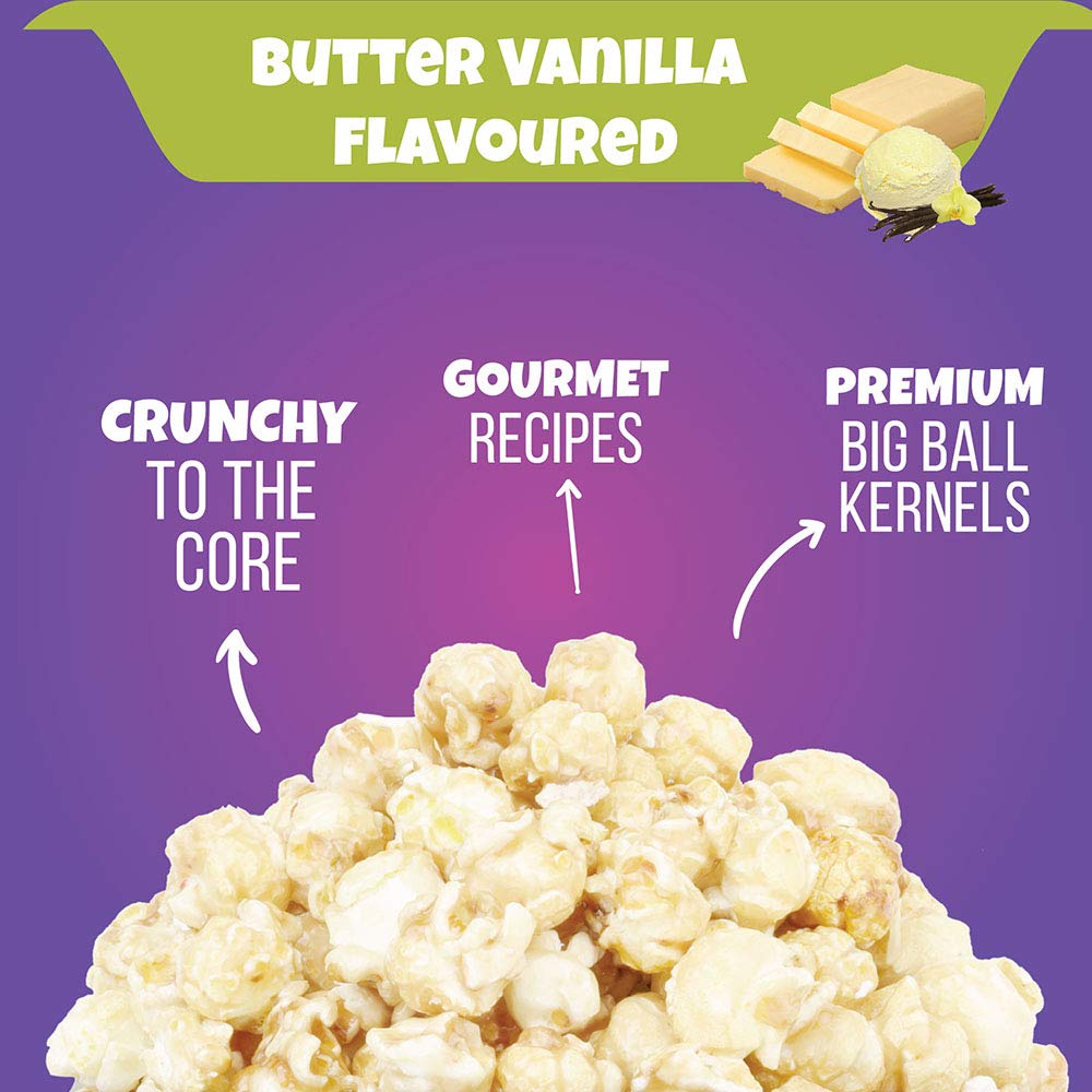 Our Butter Vanilla Popcorn is smothered in creamy classic and buttery flavour with a hint of some spices. Infused with a little salt and all of the aroma makes it a perfect choice for all age group even kids will keep coming back for more! A combination of authentic vanilla and butter flavour creates a perfect balance to make you celebration night a lot tastier. A sprinkle of salty texture makes it a simple and fun snack perfect for your family game night or weekend party plans!