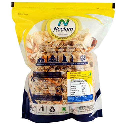 Sabhudana Flakes peanuts potato sall(sticks) sugar green chilli flakes kaddipatta salt spices and condiments